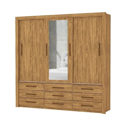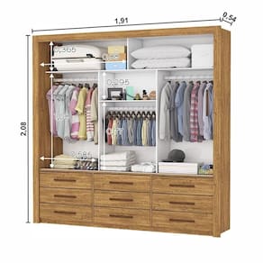O Guarda-Roupa Anjos, possui maleiros para organizar as peças maiores, o que é ideal para guardar malas, cobertores, edredons, entre outros. Os três cabideiros, além de resistentes, são ideais para pendurar camisas, calças, vestidos, sobretudos, entre outras. O designer interno possibilita acomodar e organizar todas as roupas e acessórios respeitando as exigências de um casal. As nove gavetas fixadas sobre corrediças metálicas, são ideais para guardar pijamas, shorts, meias, roupas de academias e mais.