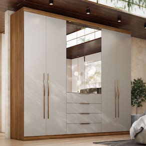 Características: Estrutura em MDP Acabamento em Pintura UV 04 Portas com dobradoças metálicas 04 Gavetas com corrediças telescópicas Possui Espelho Calceiro Metálico Cabideiro Metálico Puxadores em Plástico ABS.