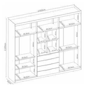 Dimensões: Altura:228 cm Largura 262,2 cm Profundidade: 55 cm