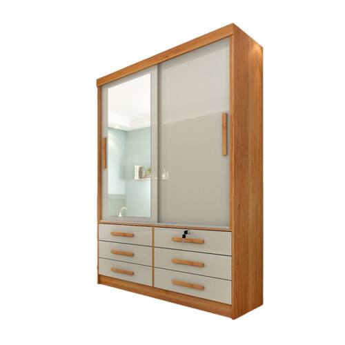 Guarda Roupa Roupeiro Chicago 2 portas Com Espelho Cinamomo Off White - Tcil