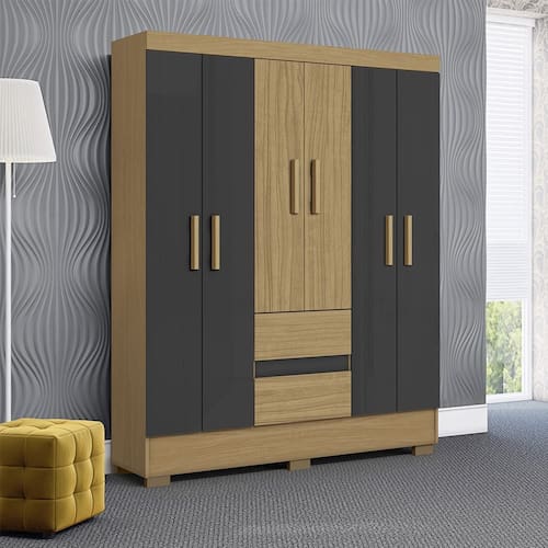 Guarda Roupa Roupeiro Coimbra 6 Portas Atacama Grafite Aramóveis - Bege