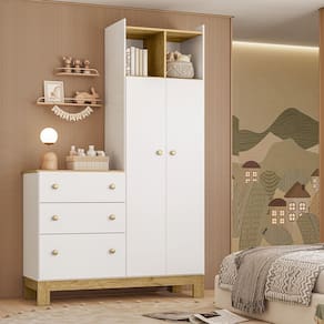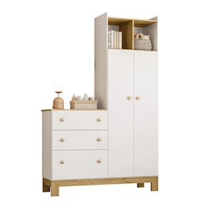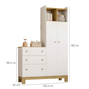 Dimensões Roupeiro com Cômoda: Altura Roupeiro: 190 cm Altura Cômoda: 86,4 cm Largura: 120,4 cm Profundidade: 42 cm