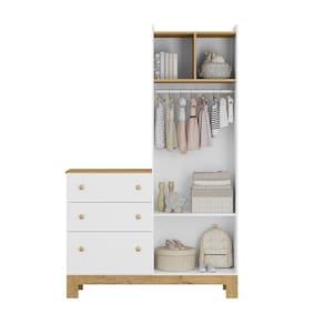 Características Estrutura em MDP Acabamento em pintura UV Acetinada Atóxica 03 Gavetas com Corrediças Metálicas 02 Portas com Puxadores de Plástico Cabideiro Metálico Sistema anti-tombamento Nichos Pés em MDF de 25mm