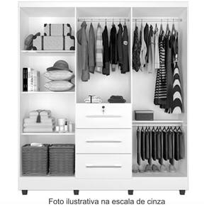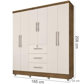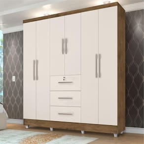Estrutura: MDPAcabamento: Pintura U.V., com verniz brilhante de alta resistência proporcionando durabilidade ao produtoPorta: Sim, 06 portas de abrir, com dobradiças metálicasGaveta: Sim, 03 gavetas externas com corrediças metálicas, sendo 01 gaveta com chavePrateleiras: Sim, 04 prateleiras, para melhor acomodaçãoCabideiro: Sim, 03 cabideiros metálicos para melhor acomodar calças e camisasEspelho: Não,Pés: Sim, em PVC para maior durabilidade e resistência, acompanha o produtoPuxadores: Sim, em PVC na coloração cromadoDimensões do produto montado