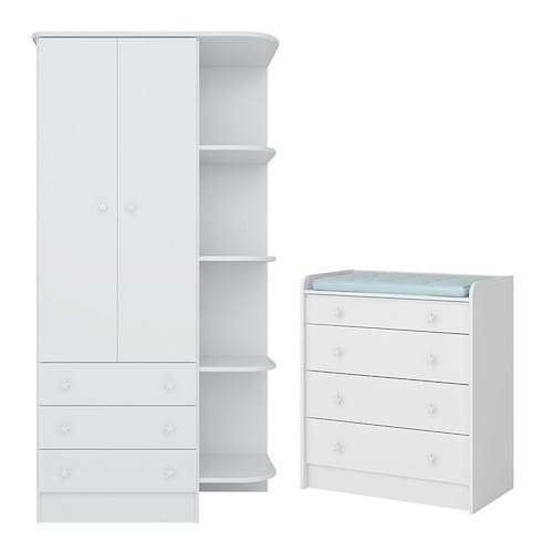 CaracterísticasEstrutura em MDPAcabamento em Pintura UV Atóxicas.02 Portas e 07 GavetasCabideiro oblongo metálicoGavetas com corrediças telescópicas de 350mmPuxadores em formato de estrelaPortas com dobradiças metálicasSistema anti-tombamento para evitar riscos de acidentesOBJETOS DECORATIVOS NÃO ACOMPANHAM O PRODUTO.O produto Limpar utilizando apenas pano umedecido com água, nunca utilizar abrasivos ou esponjas de aço. Acompanha manual e todos os acessórios para montagem. Recomendamos que a montagem seja feita por um profissional. Garantia de 03 meses para eventuais defeitos de fabricação.Dimensões do Guarda Roupa:Altura: 185 cmLargura: 88,5 cmProfundidade: 47,5 cmDimensões da Cômoda:Altura: 94 cmLargura: 83,9 cmProfundidade: 42 cmItens Inclusos:01 Guarda Roupa01 CômodaInformações de Transporte:Peso Total: 98 Kg03 Volumes ATENÇÃO, OBSERVAÇÕES IMPORTANTES.As imagens são meramente ilustrativas, não serão enviados objetos de decoração, eletrônicos e demais itens que não estejam especificados nos itens inclusos. É indispensável que seja feita a conferência do produto no ato da entrega e caso haja alguma divergência, seja feito o contato imediato com a loja e notificação no canhoto. Constatando defeito no ato da entrega, o produto não deverá ser montado até tratativa com a loja. Não será efetuada a troca do produto após a montagem ter sido efetuada. A montagem é de total responsabilidade do cliente e defeitos na montagem serão tratadas como assistências. Os processos de pendência serão tratados mediante fotos para análise e conferência da informação. As cores do produto podem variar de acordo com o seu monitor, a iluminação do ambiente em que você está e até mesmo a sua percepção visual. Não nos responsabilizamos, no ato da entrega, por subir escadas e elevadores. Eventuais despesas são de responsabilidade do cliente. Dúvidas serão tratadas via protocolo.