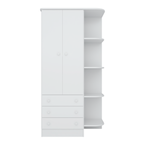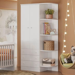 Características Estrutura em MDP Acabamento em Pintura UV Atóxica 02 Portas articuladas 03 Gavetas externas Cantoneiras laterais acopladas Cabideiro oblongo metálico Dobradiças e corrediças metálicas Puxadores em plástico poliestireno com formato de estrela Acabamento das bordas em perfil PVC Sistema anti-tombamento para evitar riscos de acidentes.