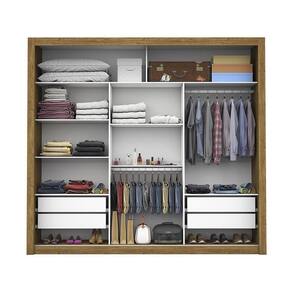 Guarda Roupa com maior resistência, durabilidade e acabamento, revestimento interno e externo: Pintura em estufas modernas com UV (ultra violeta), são túneis que secam os produtos através de lâmpadas especiais que reproduzem artificialmente os raios ultravioletas do sol. Modelo com corrediça metálica em aço, 4 gavetas espaçosas, roldanas de aço carbono com rolamento, divisão ele/ela.
