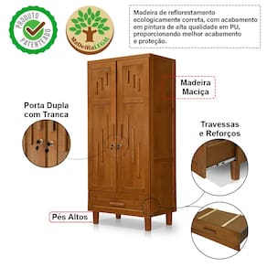 Características: Modelo: Munique Tipo: Guarda-Roupa / Roupeiro Modulado Material da Estrutura: Madeira Maciça Cor: Castanho Design elegante e funcional