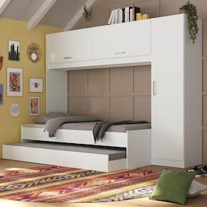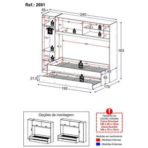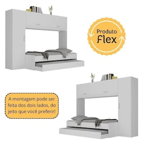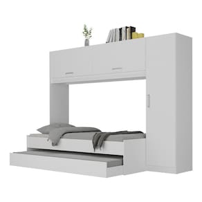 Aproveite ao máximo o espaço do seu quarto com a incrível Bicama com Guarda-Roupas/Roupeiro para colchão 88 x 188 cm Multimóveis! Produzido em MDP com acabamento em pintura UV, este conjunto oferece durabilidade e resistência. A bicama conta com barras em MDF e lastro em madeira, garantindo estabilidade e conforto durante o sono, suporta até 90kg na cama principal e até 60kg na cama auxiliar (possui rodízios que facilitam sua movimentação). Com puxadores em ABS e cabideiro metálico, o guarda-roupas conta com 1 porta lateral, 2 portas basculantes superiores e prateleiras internas, possuindo amplo espaço interno para acomodar roupas e acessórios e permitindo uma organização impecável para o seu quarto. Versátil, a porta lateral pode ser montada dos dois lados - esquerdo ou direito. Com um design moderno e funcionalidade ímpar, este conjunto é ideal para quem busca praticidade e estilo. NÃO acompanha colchões (tamanho indicado dos colchões: Principal - 188 x 88 cm | Auxiliar - 188 x 78 cm).