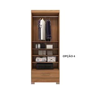 Possui várias opções de montagem interna e prateleiras espaçosas proporcionam um ambiente perfeito para guardar suas roupas, sapatos e até mesmo seus itens mais delicados, mantendo tudo sempre à mão.