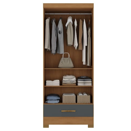 Possui várias opções de montagem interna e prateleiras espaçosas proporcionam um ambiente perfeito para guardar suas roupas, sapatos e até mesmo seus itens mais delicados, mantendo tudo sempre à mão.