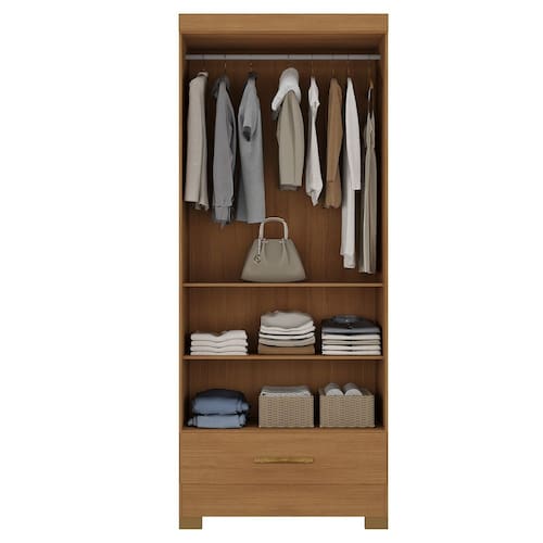 Possui várias opções de montagem interna e prateleiras espaçosas proporcionam um ambiente perfeito para guardar suas roupas, sapatos e até mesmo seus itens mais delicados, mantendo tudo sempre à mão. Ele conta com gaveta que possui corrediças telescópicas, cabideiro em alumínio e pés.