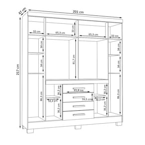 Dimensões: Altura: 201,7 cm Largura: 201 cm Profundidade: 47 cm