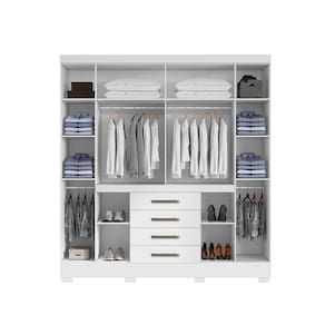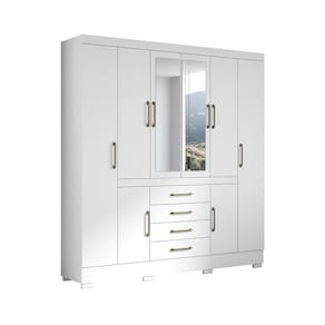 Características: Estrutura em MDP Pintura semi-brilho 08 Portas articuladas com dobradiças metálicas 04 Gavetas com corrediças metálicas Cabideiro em Alumínio Puxadores de Plástico