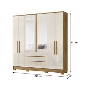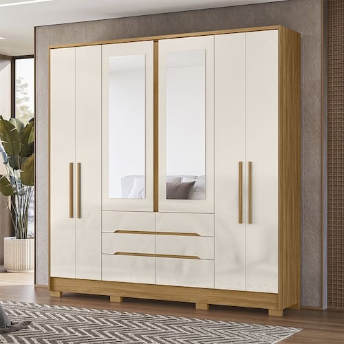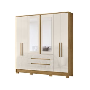 Características: Estrutura em MDP Acabamento em Pintura UV 06 Portas articuladas com dobradiças metálicas 06 Gavetas com corrediças telescópicas Gavetas com puxadores usinados Cabideiros e calceiro em alumínio Puxadores de MDF Espelhos inclusos
