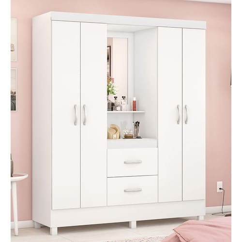 Características:Estrutura em MDPAcabamento em Pintura UV 04 Portas com dobradiças Metalicas 02 Gavetas com Corrediças MetálicasCabideiros de MetalicoPuxadores em plástico ABSPrateleiras com Amplo espaço *Acompanha Espelho OBJETOS DECORATIVOS NÃO ACOMPANHAM O PRODUTO.Limpar utilizando apenas pano umedecido com água, nunca utilizar abrasivos ou esponjas de aço. Acompanha manual e todos os acessórios para montagem. Recomendamos que a montagem seja feita por um profissional. Garantia de 03 meses para eventuais defeitos de fabricação.Dimensões:Altura: 181 cmLargura: 148 cmProfundidade: 47 cmItens Inclusos:01 Guarda Roupa Informações de Transporte:Peso Total: 97 Kg2 VolumesATENÇÃO, OBSERVAÇÕES IMPORTANTES.As imagens são meramente ilustrativas, não serão enviados objetos de decoração, eletrônicos e demais itens que não estejam especificados nos itens inclusos. É indispensável que seja feita a conferência do produto no ato da entrega e caso haja alguma divergência, seja feito o contato imediato com a loja e notificação no canhoto. Constatando defeito no ato da entrega o produto não deverá ser montado até tratativa com a loja. Não será efetuada a troca do produto após a montagem ter sido efetuada. A montagem é de total responsabilidade do cliente e defeitos na montagem serão tratadas como assistências. Os processos de pendências serão tratados mediante a fotos para analise e conferência da informação. As cores do produto podem variar de acordo com o seu monitor, a iluminação do ambiente em que você está e até mesmo a sua percepção visual. Não nos responsabilizamos, no ato da entrega, por subir escadas e elevadores. Eventuais despesas são de responsabilidade do cliente. Dúvidas serão tratadas via protocolo.