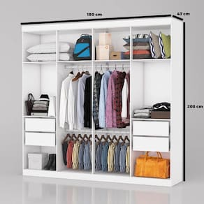 Guarda Roupa Rubi Casal 8 Portas 4 Gavetas Carioca O design elegante e moderno do Guarda Roupa Rubi Casal 8 Portas 4 Gavetas Carioca vai adicionar um toque de sofisticação ao seu quarto. O modelo é sinônimo de qualidade e bom gosto. Você terá um móvel durável e funcional que complementará a decoração da sua casa. Com 8 portas e 4 gavetas, este guarda-roupa oferece um amplo espaço para armazenar todas as suas roupas, sapatos e acessórios. Nunca mais se preocupe em encontrar espaço para suas roupas, este móvel oferece uma solução prática e eficiente para organizar seu guarda-roupa. Compre agora o Guarda Roupa Rubi Casal 8 Portas 4 Gavetas Carioca e transforme o seu quarto em um lugar organizado e cheio de estilo, tudo isso com a garantia de qualidade da Estrela Móveis.\nMEDIDAS\nAltura 208 cm\nLargura 180 cm\nProfundidade 47 cm\nCARACTERÍSTICAS\nFabricante Carioca\nModelo Guarda Roupa Rubi\nGarantia 3 meses\nTipo de produto Guarda Roupa de Casal\nAmbiente Quarto\nEstrutura MDP\nQuantidade de Portas 08\nQuantidade de Gavetas 04\nTipo de Porta Bater\nTipo de Corrediça Metálica\nAcabamento Pintura U.V.\nTipo de Dobradiça Metálica\nNecessita Montagem Sim\nAcompanha Manual de Instalação Sim\nINFORMAÇÕES IMPORTANTES\nObjetos decorativos que porventura apareçam na foto, não acompanham o produto. Não nos responsabilizamos pela montagem/instalação dos produtos.\nMontagens, desmontagens e instalações são responsabilidades do cliente. Indicamos que contrate uma empresa de montagem ou um montador de sua confiança.\nAlém disso, favor verificar se os pés e acessórios estão dentro do forro inferior do produto. Em suma, todas as informações divulgadas sobre o produto são de responsabilidade do Fabricante.\nAs cores do produto podem variar de acordo com o seu monitor, a iluminação do ambiente em que você está e até mesmo a sua percepção visual. Além da cor, pequenos detalhes e acabamentos podem não ficar evidentes na foto, por isso as imagens são meramente ilustrativas