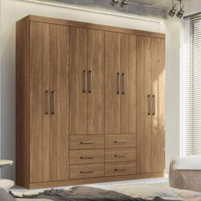 Guarda Roupa Santos Andirá Liverpool Casal 8 Portas 9 Prateleiras Jatoba O Guarda Roupa Liverpool da Santos Andira e um movel pratico e funcional, e se encaixa em qualquer ambiente do quarto de casal ou solteiro. Com 8 portas e 6 gavetas, esse roupeiro garante muito espaco para guardar todas as roupas. Puxadores em ABS garantem um design moderno. Internamente, possui amplas prateleiras para guardar todas as roupas de forma organizada, assim como edredons, cobertores, caixas, travesseiros, decoracao, etc. Possui 3 cabideiros em aluminio para pendurar todas as roupas (casacos, vestidos, camisas, blusas) com muita organizacao e seguranca. O acabamento na cor madeirada e com verniz fosco e na cor off White e com verniz brilho, tudo dentro dos padroes de preservacao do meio ambiente. Um guarda roupa de casal completo e muito pratico para o seu quarto! Caracteristicas 08 Portas com dobradicas metalicas 09 Prateleiras 03 cabideiros em aluminio 06 Gavetas com corredicas metalicas Puxadores em ABS