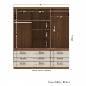 Design Moderno e Sofisticado O modelo conta com cabideiros em alumínio e prateleiras, que complementam as excelentes características deste móvel. Os puxadores, na cor champagne, são feitos de ABS.