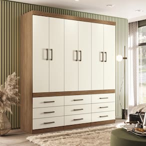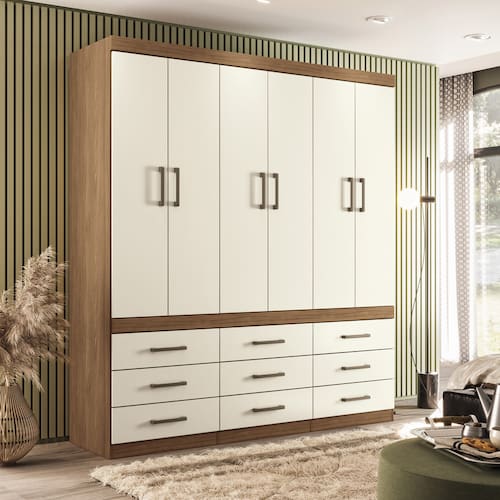 Mais Espaço e Versatilidade O guarda-roupa de 6 portas e 9 gavetas atende aos mais altos padrões de qualidade e funcionalidade. Suas 9 gavetas oferecem amplo espaço para armazenar todos os seus pertences.