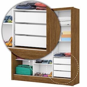 Guarda-roupa Dubai Sem Espelho Freijó/off White Carioca Móveis Freijó Com Off White Guarda-Roupa Dubai combina 6 prateleiras, 1 cabideiro e 3 gavetas, alem de deixar o produto lindo e funcional, proporciona ao cliente acomodar suas roupas de forma organizada. As roldanas em aco e o trilho em aluminio potencializam o deslizar das portas. Cabideiro com 1,11m em aluminio. Ideal para pendurar pares de blusas, camisas, vestidos, acessorios, entre outros. As prateleiras e o lugar o ideal para colocar roupas de cama e de banho, perfumes, kits de maquiagem, caixinhas com acessorios e bolsas menores. As tres gavetas fixadas sobre corredicas metalicas, sao ideais para guardar pijamas, shorts, meias, roupas de academia e muito mais. As sapateiras tem o espaco ideal para guardar desde mala de viagem, ate colecoes de sapatos, tenis, ou outros acessorios! Caracteristicas: 3 Portas de Correr 6 Prateleiras 1 Cabideiro 3 Gavetas Material: MDP
