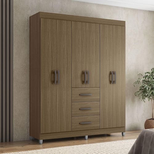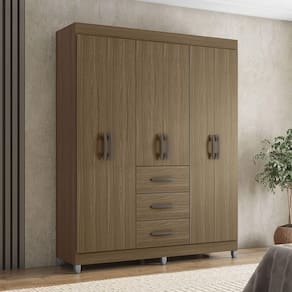 Guarda Roupa Servilha Com 6 Portas E 3 Gavetas Poquema Castanho Guarda Roupa Servilha com 6 Portas e 3 Gavetas Poquema Caracteristicas do produto: Marca: Poquema Modelo: Servilha Material: MDP Espessura: 15 mm Tipo das Dobradicas: Metalicas Tipo das Corredica: Metalica Material dos Puxadores: Plastico Cinza Material dos Pes: Plastico Cinza 06 Portas com dobradicas metalicas 03 Gavetas com corredicas metalicas Cabideiro Acabamento: Pintura