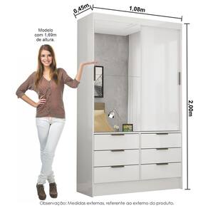 O Guarda-Roupa Sevilha com 2 portas de correr, 200cm de altura, 108cm de largura e 45cm de profundidade, combinado com 6 gavetas, 1 prateleira e 1 cabideiro, possibilita ao consumidor acomodar todas as roupas de maneira organizada e com maior visibilidade. As roldanas em aço e o trilho em alumínio potencializam o deslizar das portas.