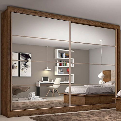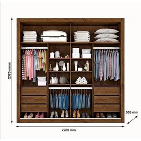 Guarda-Roupa Sevilha 2 Portas com Espelho e 6 Gavetas Made Marcs - Com o Guarda-Roupa Sevilha, seu quarto ficará mais bonito e organizado! Produzido com chapas 100% mdf, com costas parafusadas para dar maior durabilidade. Possui 2 portas de correr com espelho em simples abertura com trilho inferior de alumínio, roldana regulável com mola anti-descarrilhamento, perfil/puxador na cor Bronze, 8 peças de espelho de medidas: 1053x544mm; 6 gavetas com corrediças telescópicas que permitem deslizar suave, abertura total e maior suporte de peso (até 5kg), 10 prateleiras (suportam até 5kg) duas das prateleiras são removíveis para melhor adaptação do espaço conforme sua necessidade garantido melhor aproveitamento interno e 4 cabideiros em alumínio. Para afirmar a excelência do produto, as embalagens seguem as normas da abnt, utilizando caixas em papelão reforçado, as peças são separadas com isomanta, os topos das caixas possuem reforço para evitar danos as quinas e o fechamento da caixa com fita de arquear e plástico termicolhivel. Utilizamos material ecologicamente correto. Este produto conta ainda com pintura verniz uv que da um lindo acabamento. é ideal para complementar a decoração de seu dormitório.