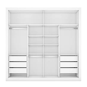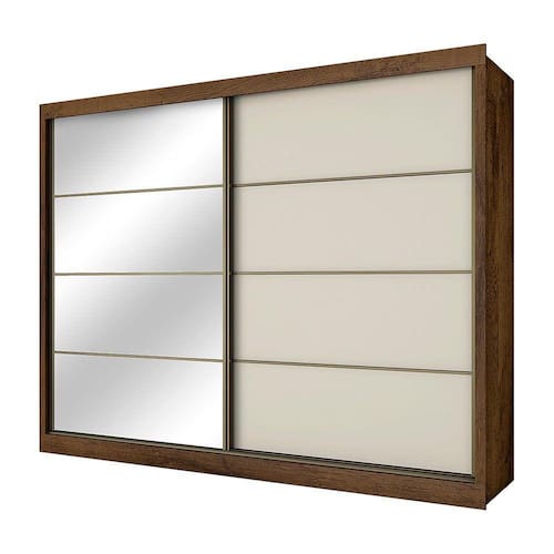 Caracteristicas: Cabideiro e Calceiro interno em alumínio 6 gavetas telescópicas 8 Prateleiras Removíveis 2 portas deslizantes Porta com espelho Modelo:Sevilha Matéria-prima: MDF Revestimento: Impressão com Verniz UV Acabamento: Semi brilho Portas: 2 Deslizantes Trilhos: Alumínio e plástico Corrediças: Telescópicas