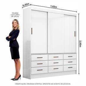 O Guarda-Roupa Sevilha 3 Portas 9 gavetas com 2,00 de altura, 1,62 de largura e 0,45 de profundidade, com 3 portas portas e 9 gavetas externas com corredi?as met?licas.