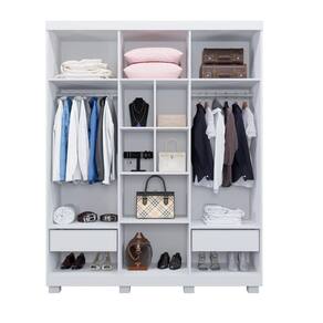 #127775; Beneficios e Funcionalidades Organizacao e Conforto: 6 portas, 6 prateleiras e nichos acomodam suas roupas de forma organizada e confortavel. Durabilidade: Produzido em chapa de 15 mm, garantindo uma vida util muito maior. Suavidade e Praticidade: Gavetas com corredicas telescopicas proporcionam suavidade e durabilidade. Estilo e Funcionalidade: Cabideiro em aluminio e puxadores madeirados na cor do produto completam o design elegante.