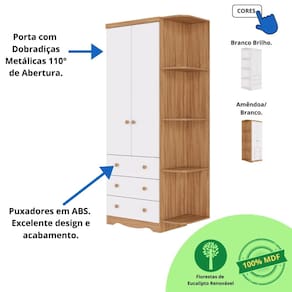 É um Guarda Roupa Infantil com 2 portas 3 gavetas com prateleiras.