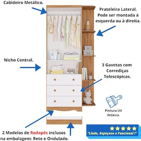 O Guarda Roupa infantil Smim com Prateleira da Móveis Peroba é ideal para quem busca funcionalidade para um ambiente com espaço reduzido, aliado a custo benefício, decoração, qualidade e segurança. No Guarda Roupa Smim com Prateleiras da Móveis Peroba, os itens do seu bebê estarão bem protegidos, organizados e fáceis de serem encontradas, além de tudo conta com as prateleiras externas que dão um toque de design sofisticado, ideal para objetos e brinquedos que ajudam na decoração variada de acordo com a sua preferência.