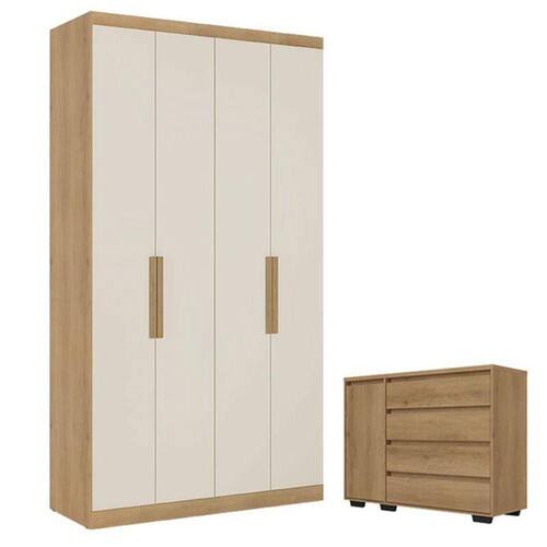 Guarda Roupa Solteiro Milan 4 Portas Capuccino Off White e Cômoda com Porta Aurora Capuccino - THB