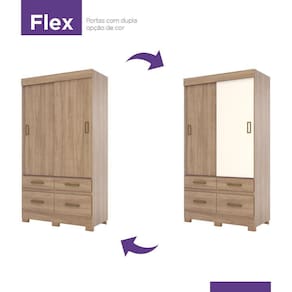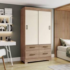 Guarda Roupa Solteiro 02 Portas Deslizantes 04 Gavetas Be25 Briz Jequitibá Bri E Jequitibá Bri/off White