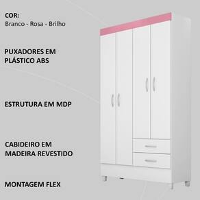 Guarda Roupa Solteiro 04 Portas 42860, ideal para cômodos onde o espaço é limitado, ele oferece uma ótima modernização e sofisticação ao ambiente. Estrutura 100% em MDP 12 mm, feito com material ecologicamente correto, para melhor durabilidade e resistência da peça, conta com pintura em acabamento UV. Composto por 04 portas de giro com dobradiças metálicas, 02 gavetas contendo corrediças metálicas, 2 prateleiras internas e 1 maleiro para acomodar suas roupas de cama e travesseiros, 2 cabideiros em madeira revestida, seus puxadores são em plástico ABS, e pés em PVC. Além de ampla capacidade de armazenamento, foi desenvolvido para oferecer total conforto e comodidade para você. Este móvel chegará em sua casa separado em 01 volume.