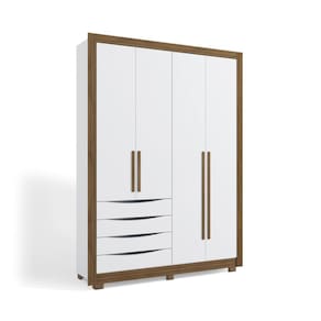 Deixe seu quarto ainda mais lindo, moderno e organizado com a linha de Guarda-Roupas 100% MDF da Loja Oficial Kappesberg. Na cor Branco/Nogueira, com 4 portas e 4 gavetas, sem espelho e pés em Polipropileno, ele tem o tamanho ideal para um quarto de solteiro. Todo produzido com chapas de 15mm, o que garante mais robustez, firmeza e qualidade ao seu Guarda-Roupas. Sua pintura é feita com sete camadas, garantindo mais durabilidade e beleza ao seu móvel. As portas possuem puxadores em madeira e Sistema de Amortecimento, proporcionando um fechamento suave, além do detalhe ripado em sua moldura, deixando seu quarto com ainda mais estilo e modernidade. Você precisa de espaço? Na parte interna, há muito espaço com diversos nichos de tamanhos diferentes, ideal para organizar calçados e roupas dobradas. Nos Cabideiros, que são Metálicos e com suporte interno, garantindo melhor acabamento e durabilidade, é possível guardar as roupas em cabides e até mesmo organizar mantas e acessórios. Suas gavetas possuem Corrediças Telescópicas, garantindo a abertura total, para que você aproveite todo espaço disponívelf eito 100% em MDF, o guarda-roupas M581 é a opção ideal para quem quer renovar seu quarto com a qualidade, modernidade e beleza dos Móveis Kappesberg.
