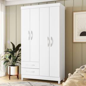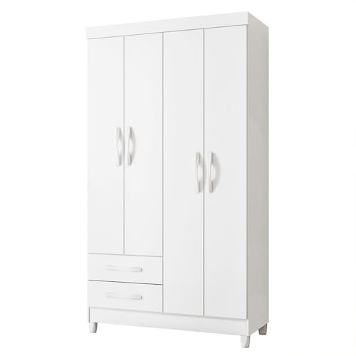 Este Guarda Roupa Solteiro 103cm 4 Portas Dony A02 Branco, da Mpozenato é a escolha ideal para quem busca organização, resistência e sofisticação no Quarto de Solteiro.