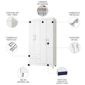 Produzido em MDP e com pintura UV, seu design moderno e funcional conta com quatro portas com dobradiças metálicas, que garantem maior durabilidade e facilidade no uso diário. Além disso, ele conta com vistas flex o que da a opção de escolher a cor que mais combina com seu quarto. o cabideiro em madeira é perfeito para pendurar suas roupas de forma prática, enquanto os puxadores em ABS proporcionam um toque de elegância. Com duas gavetas equipadas com corrediças metálicas, este Guarda Roupa oferece um espaço amplo e bem distribuído para que você possa organizar desde roupas mais volumosas até pequenos acessórios com eficiência. A combinação de materiais de alta qualidade garante resistência ao uso contínuo, tornando o produto ideal para quem procura durabilidade sem abrir mão do design sofisticado. Outro grande benefício do Guarda Roupa 4 Portas são os pés em ABS, que não apenas conferem um visual moderno, mas também facilitam a limpeza do ambiente, permitindo o acesso ao piso abaixo do móvel. Produzido com atenção aos detalhes, este guarda-roupa oferece praticidade e qualidade, trazendo mais conforto e organização para o seu dia a dia.