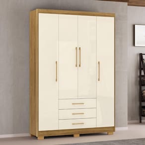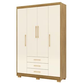 Guarda Roupa Solteiro 150cm 4 Portas Espanha Nature/Champanhe - Vila Rica