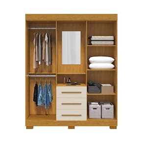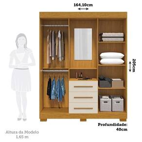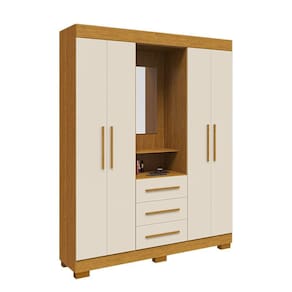 Guarda-roupa Solteiro 164,10cm 4 Portas 3 Gavetas Capelinha com Espelho 100% Mdp Gardênia Cinamomo/Off White