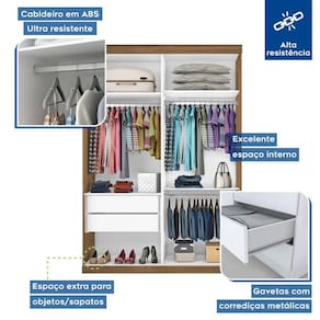 Características: Estilo; Moderno Garantia; 03 Meses Acabamento; Pintura Possui Pés; Não Possui Portas; Sim Tipo de Porta; Correr Possui Gavetas; Sim Tipo de Gaveta; Interna Escala de Brilho; Brilhante Possui Calceiros; Sim Material da Porta; MDP Origem do Produto; Nacional Possui Cabideiros; 02 Acabamento dos Pés; Pintura Ambiente Principal; Quarto Formato do Espelho; Retangular Material da Gaveta; MDP Material Principal; MDP Possui Prateleiras; Sim Acabamento da Porta; Pintura Acabamento da Gaveta; Pintura Tipo de Guarda-roupa; Solteiro Material da Prateleira; MDP Quantidade de Espelhos; 06 Espelhos com Tamanhos Iguais Acabamento da Prateleira; Pintura Complexidade da Montagem; Alta: deve ser montado por um montador especializado Tipo de Puxador da Porta; Externo Escala de Brilho da Porta; Brilhante Tipo de Puxador da Gaveta; Embutido Escala de Brilho da Gaveta; Brilhante Tipo de Corrediça da Gaveta; Metálica Simples Material do Puxador da Porta; Alumínio Escala de Brilho da Prateleira; Brilhante Tipo de Dobradiça/Corrediça da Porta; Alumínio Ambiente; Quarto Possui Espelhos; Sim Gaveta com Chave; Não Necessita Montagem; Não Possui Painel de TV; Não Sapatas Niveladoras; Não Gaveta com Divisores; Não Possui Espelho Interno; Não Possui Organizador de Gaveta; Não Acompanha Manual de Instalação; Sim Possui Espaço para Vestidos Longos; Não Itens Inclusos; 1 Guarda Roupa e Manual de Montagem Sistema de Montagem; Parafuso, Minifix Espessura do Espelho; 3 mm Peso Máximo por Gaveta; 9 kg Peso Máximo por Prateleira; 9 kg Possui Sapateira; Não Recomendações de Uso, Manutenção e Limpeza; Limpar com flanela limpa e seca. Não usar produtos abrasivos. Quantidade de Portas; 2 Quantidade de Gavetas; 2 Quantidade de Prateleiras; 2 Marca: Não Informado Ean: 7895098905527