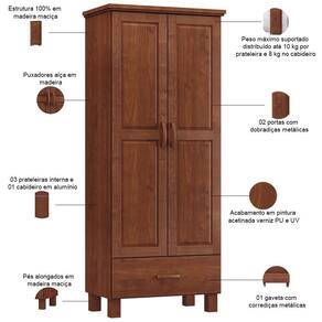 O Guarda Roupa Solteiro Selena, fabricado em 100% madeira maciça, é a resposta sofisticada para quem busca organização sem abrir mão do requinte.