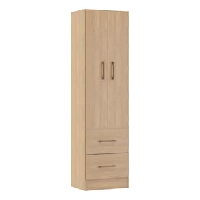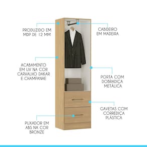 Caracter?sticas: Refer?ncia: 8012 Material: MDP de 12 mm Acabamento: Pintura UV na cor Carvalho Dakar e Champanhe Portas: 02 Gavetas: 02 Portas com Dobradi?a Met?lica Gavetas com Corredi?a Pl?stica Puxadores em ABS na cor Bronze Cabideiro em Madeira
