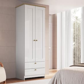 Organização eficiente, com cabideiro, prateleiras e gavetas