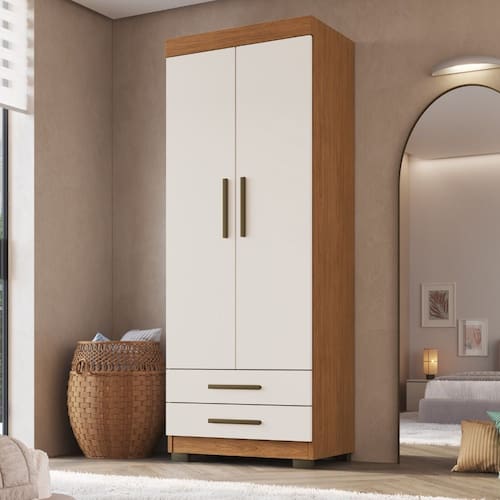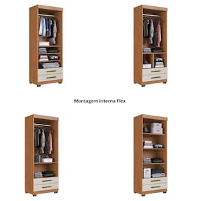 Caracteristicas: 2 Gavetas 2 Portas Acabamento acetinado texturizado Corredicas telescopicas Estrutura em MDP Flex 4 possibilidades de montagem interna com cabideiro em aluminio e prateleiras Puxadores em ABS Possui pes