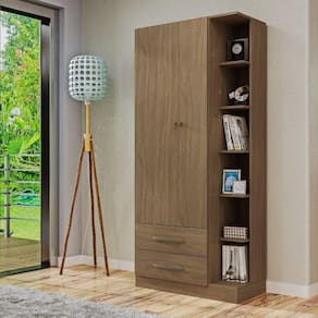 O guarda roupa Moju é moderno, prático e funcional! Se adapta a qualquer ambiente, seja ele o seu quarto, cozinha ou área de serviço. Ideal para guardar roupas, calçados, produtos de limpeza e higiene, é muito bem dividido, possui 4 prateleiras internas e mais 6 externas. Na parte inferior conta com 2 gavetas, com corrediças metálicas. Este móvel é produzido 100% em MDP. Acabamento da Prateleira: Pintura UV Escala de Brilho da Prateleira: Fosco Possui Cabideiros: Não Acabamento da Gaveta: Pintura UV Escala de Brilho da Gaveta: Fosco Material do Puxador da Gaveta: ABS Possui Organizador de Gaveta: Não Acabamento da Porta: Pintura UV Escala de Brilho da Porta: Fosco Material do Puxador da Porta: ABS Altura do Espelho: cm Ambiente Principal: Quarto Complexidade da Montagem: Média: pode ser montado por mais de uma pessoa e/ou necessite de maior conhecimento para montagem Cor: Nogueira Cor do Produto: Nogueira Cor Interna: Nogueira Escala de Brilho: Fosco Espessura do Espelho: mm Gaveta com Chave: Não Itens Inclusos: 1 Guarda-Roupa, Kit Ferragens e Manual de Montagem. Largura do Espelho: cm Manual de Montagem e Instalação: https://cdn2.madeiramadeira.com.br/atributo/mapi-marafon/1205766-manual-2002.pdf Material da Gaveta: MDP Material da Porta: MDP Material da Prateleira: MDP Material Principal: MDP Necessita Montagem: Sim Origem do Produto: Nacional Peso: 46 Peso Máximo por Gaveta: 5 Peso Máximo por Prateleira: 5 Possui Calceiros: Não Possui Espelho: Não Possui Pés: Não Possui Portas: 02 Possui Prateleiras: 10 Recomendações de Uso, Manutenção e Limpeza: Limpeza com pano umedecido. Não aplicar lustra móveis. Sistema de Montagem: Parafusos, Cavilhas e Buchas Cilíndricas Tipo de Corrediça da Gaveta: Metálica Simples Tipo de Dobradiça/Corrediça da Porta: Metálica Tipo de Gaveta: Externa Tipo de Guarda-Roupa: Solteiro Tipo de Puxador da Gaveta: Externo Tipo de Puxador da Porta: Externo Marca: Marafon Móveis