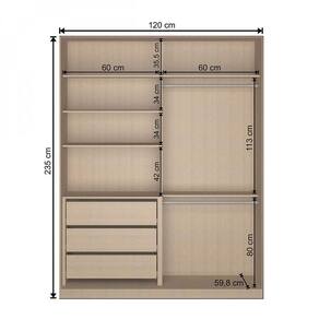 +M%F3veis+com+design+contempor%E2neo+e+cores+diferenciadas+que+se+harmonizam+facilmente+com+todos+os+estilos+de+ambientes.+Linha+de+produtos+com+alta+resist%EAncia+desenvolvidos+100%25+em+MDF%2C+com+o+objetivo+de+atender+todas+as+necessidades+do+mercado+nacional. Acabamento da Prateleira: Pintura Texturizada UV Escala de Brilho da Prateleira: Fosco Possui Cabideiros: 02 Acabamento da Gaveta: Pintura Texturizada UV Escala de Brilho da Gaveta: Fosco Possui Organizador de Gaveta: Não Acabamento da Porta: Pintura Texturizada UV Escala de Brilho da Porta: Fosco Material do Puxador da Porta: Alumínio : 235 cm Ambiente Principal: Quarto calculo: unidade Complexidade da Montagem: Média: pode ser montado por mais de uma pessoa e/ou necessite de maior conhecimento para montagem Cr: Noce e Branco Cr do Produto: Noce e Branco Cr Flex: Não Cr Interna: Noce Escala de Brilho: Fosco Estilo: Moderno Gaveta com Chave: Não Itens Inclusos: 1 Guarda Roupa e Manual de Montagem : 120 cm Linha ou Coleção: Manual de Montagem e Instalação: https://cdn2.madeiramadeira.com.br/atributo/nova-mobile/562275-7898463860438-rc2005-23-27-2m-manual-de-montagem.pdf Material da Gaveta: MDF Material da Porta: MDF Material da Prateleira: MDF Material Principal: MDF Montagem Flex: Não Necessita Montagem: Sim Origem do Produto: Nacional Peso: 123 kg Peso Máximo por Gaveta: 5 kg Peso Máximo por Prateleira: 15 kg Possui Calceiros: Não Possui Espelho: Não Possui Espelho Interno: Não Possui Gavetas: 03 Possui Painel de TV: Não Possui Pés: Não Possui Portas: 02 Possui Prateleiras: 06 : 59 cm Recomendações de Uso, Manutenção e Limpeza: Para a limpeza do móvel utilizar uma flanela seca. Sistema de Montagem: Parafusos, Cavilhas e Minifix. status-cadastro: Aprovado Tamanho: Tipo de Corrediça da Gaveta: Metálica Telescópica Tipo de Dobradiça/Corrediça da Porta: Alumínio Tipo de Gaveta: Interna Tipo de Guarda-Roupa: Solteiro Tipo de Porta: Correr Tipo de Puxador da Gaveta: Não Possui Tipo de Puxador da Porta: Embutido