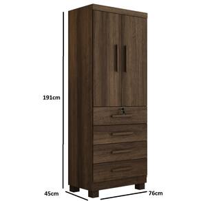 Características: Estrutura em MDP 2 Portas 4 Gavetas Cabideiro em alumínio Corrediças Telescópicas Chave