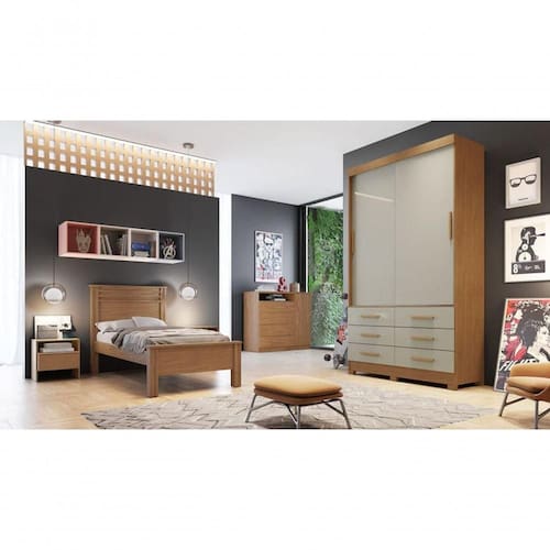 Guarda Roupa Solteiro 2 Portas 6 Gavetas - Capri-Cumaru/Fendi - Móveis Novo Horizonte